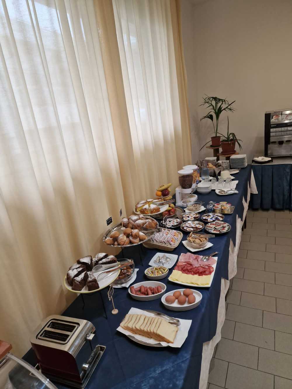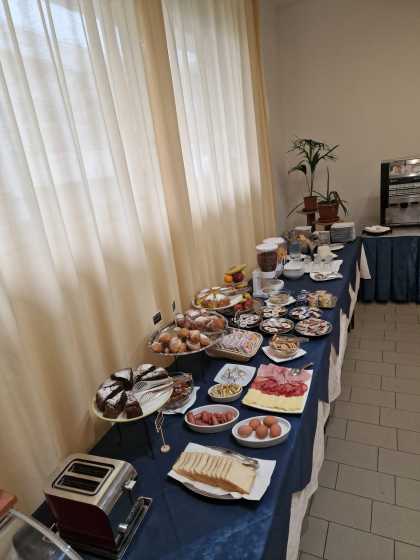 The hotel offers an international breakfast service with a sweet and savory buffet and homemade cakes from 07:30 until 10:00 in the morning.